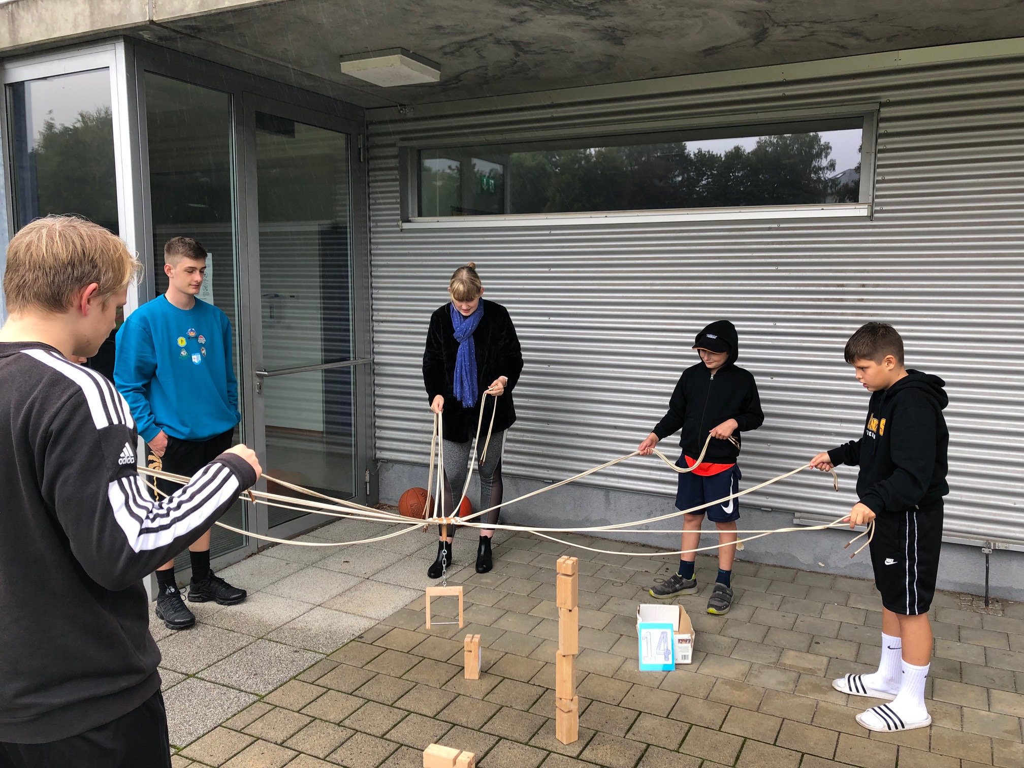 Nach der notwendigen Stärkung zum Mittag wurde in bunt gemischten, ausgelosten Teams ein Parcour mit 14 Stationen bewältigt, wo man nicht nur dem teilweise einsetzenden Regen trotzte, sondern auch interdisziplinär und international gut zusammenarbeitete, um die jeweilige Aufgabe zu bewältigen.